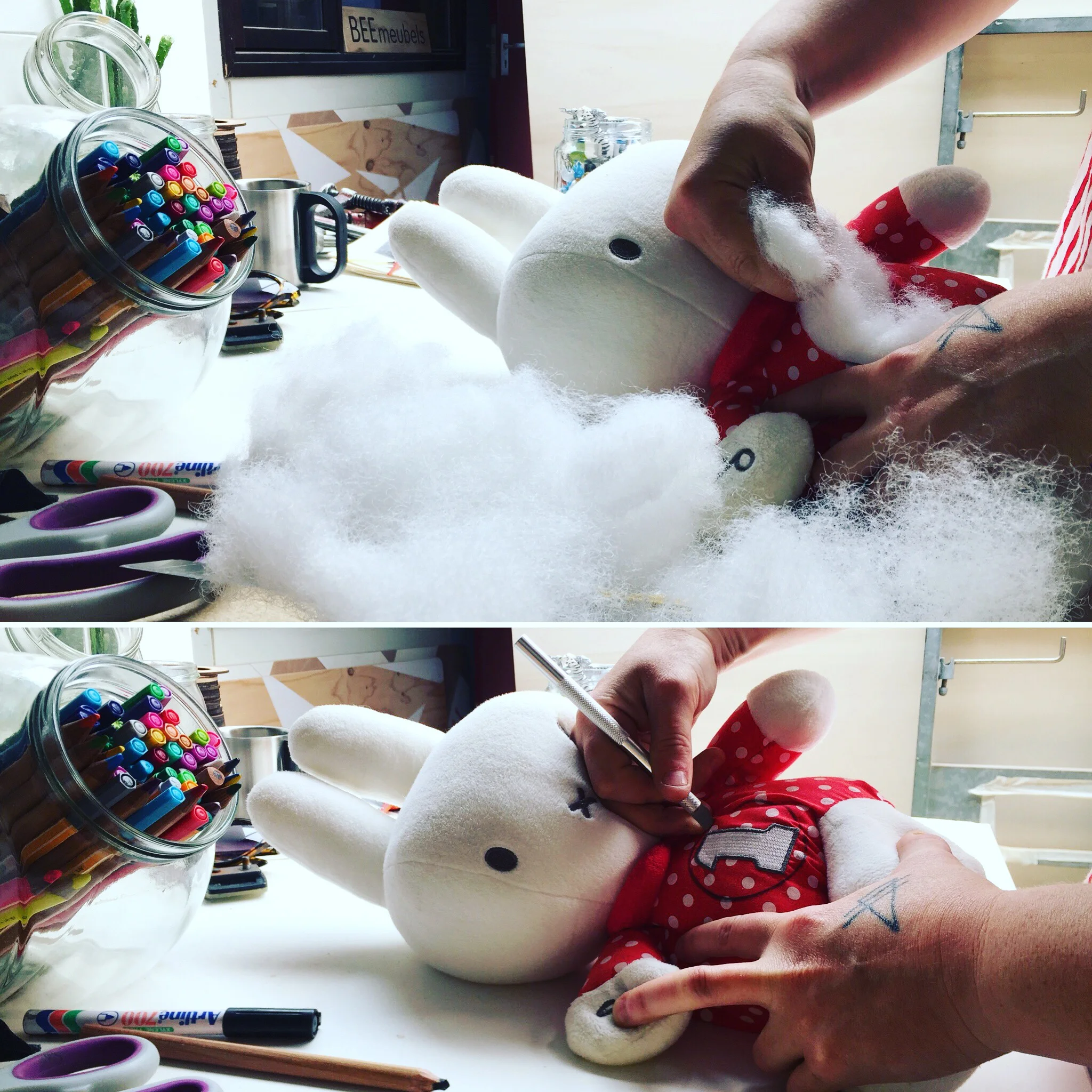 I wanted to work within a soft finish, i found this lonely Miffy soft toy in a charity show just down the road. It felt natural to place a macabre illustrated scene in memory to the TV series Twin Peaks inside her.